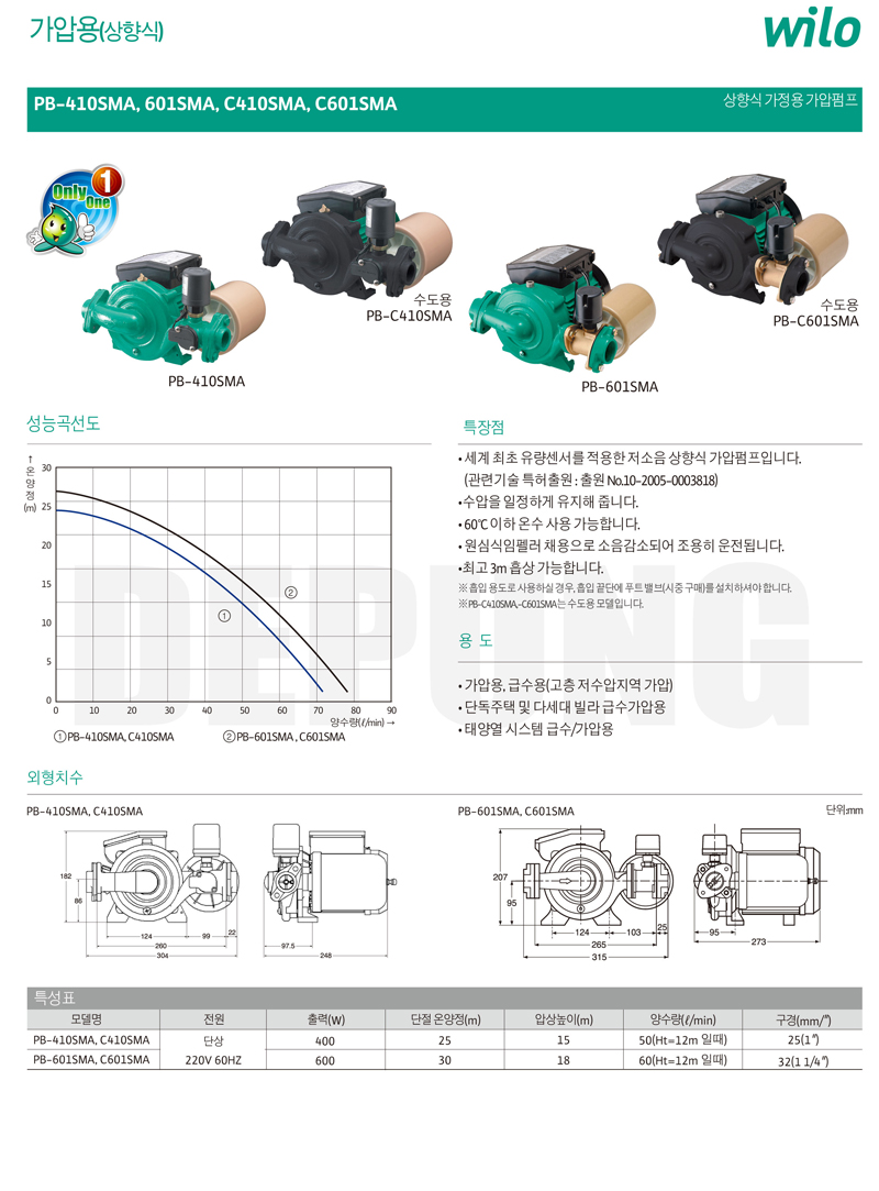Àª·ÎÆßÇÁ »óÇâ½Ä °¡¾ÐÆßÇÁ PB-601SMA ±¸°æ32MM ´Ü»ó220V¿ë.À¯·®¼¾¼ ¹× ¾Ð·Â½ºÀ§Ä¡ Àû¿ë.